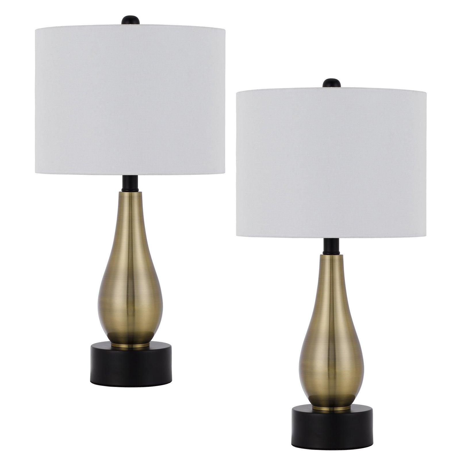 The BO-3099TB-2 Ashland Metal Table Lamp set is designed to elevate your home decor with its elegant pear-shaped brushed metal body and vintage-inspired antique brass finish. Each lamp features a durable metal construction with a hardback drum fabric shade, offering a soft and inviting glow. Sold as a pair, these lamps come with two shades and ship in a single carton for your convenience. The circular weighted base ensures stability, while the 100W wattage and E26 bulb base provide ample lighting. Measuring 13.80 inches in length and width, and 24.00 inches high, these lamps require assembly and include a one-year warranty, reflecting Cal Lighting's commitment to quality craftsmanship.