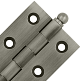 2 1/2 Inch x 1 11/16 Inch Solid Brass Cabinet Hinge (Antique Nickel Finish) - This hinge measures 2 1/2 inches tall by 1 11/16 inches wide and comes standard with a ball tip. The hinge also comes complete with the mounting hardware.