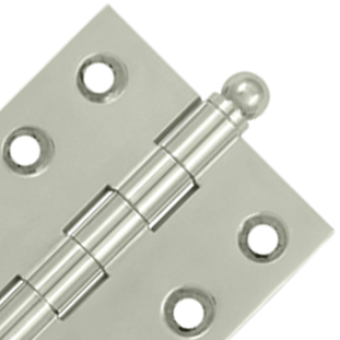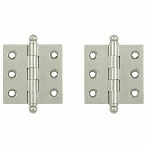 2 Inch x 2 Inch Solid Brass Cabinet Hinge (Polished Nickel Finish) - This hinge measures 2 inches tall by 2 inches wide and comes standard with a ball tip. The hinge also comes complete with the mounting hardware.