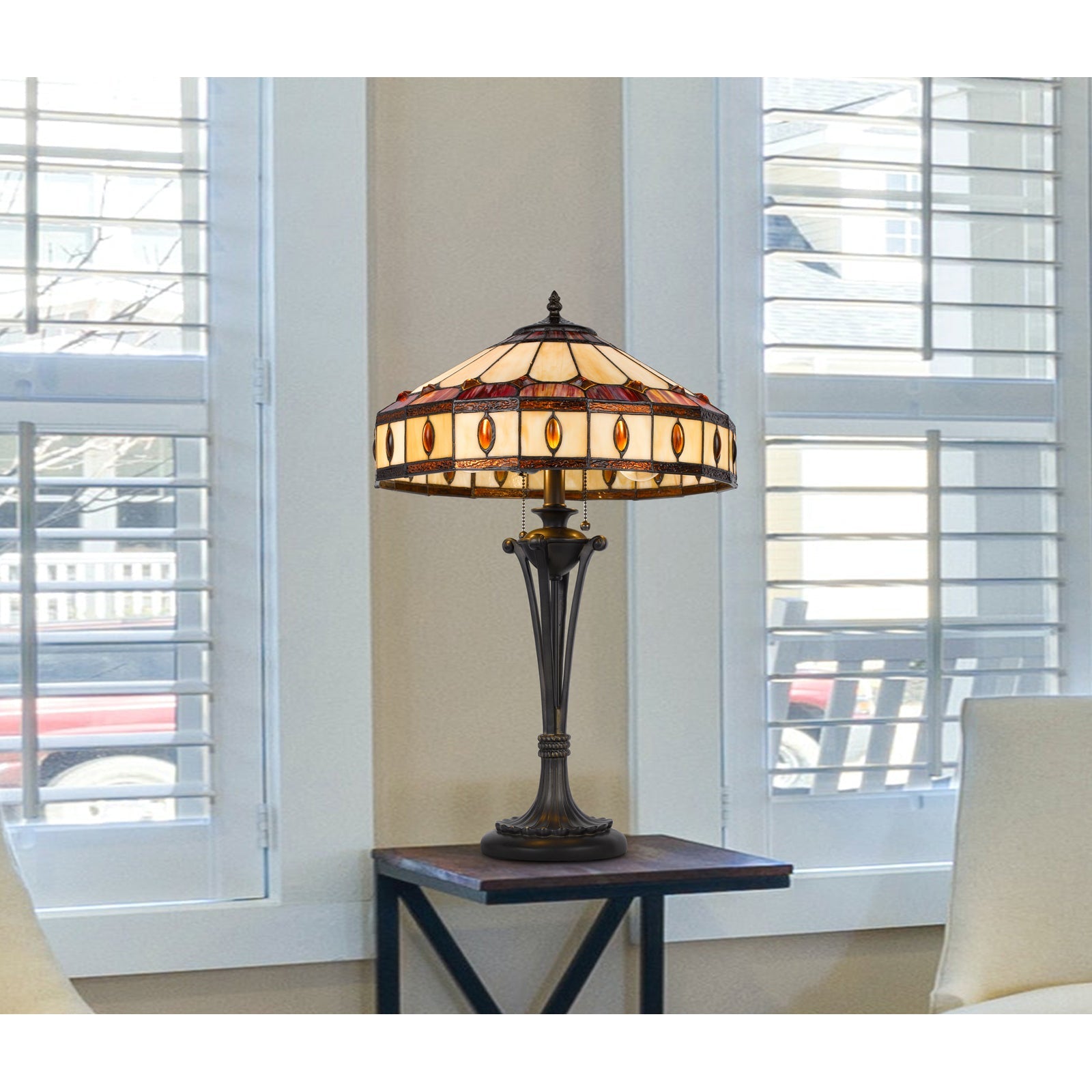 The BO-3077TB Tiffany table lamp is a stunning addition to any space, featuring a durable metal construction and beautifully painted Tiffany art glass. This lamp operates with two E26 bulbs, each supporting a maximum wattage of 60W, and includes a convenient pull chain mechanism for easy operation. It requires minimal assembly and ships in one carton, ensuring a hassle-free setup. The weighted base enhances stability, while its vibrant colored glass adds a captivating pop of color to your decor. With dimensions of 22.00 inches in length, 10.80 inches in width, and 24.30 inches in height, it is both functional and aesthetically pleasing. Backed by a one-year warranty against defects, this lamp usually ships within 3 business days.