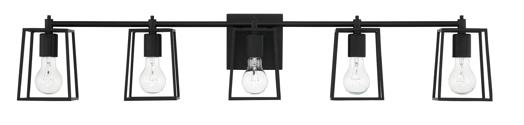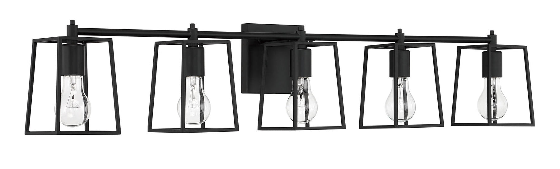 The Dunn 5 Light Vanity in Flat Black combines transitional style with versatility, making it an ideal lighting fixture for any decor. Accommodating five medium base bulbs (not included), each with a maximum wattage of 60W, this vanity light features clear glass accents and clean lines that enhance its modern appeal. Measuring 40.88 inches in width and 7.88 inches in height with a 5.87-inch extension, it is wall-mounted and damp rated, ensuring it can be effectively used in humid areas such as bathrooms. With a 1-year limited warranty, the Dunn collection exemplifies quality and elegance.