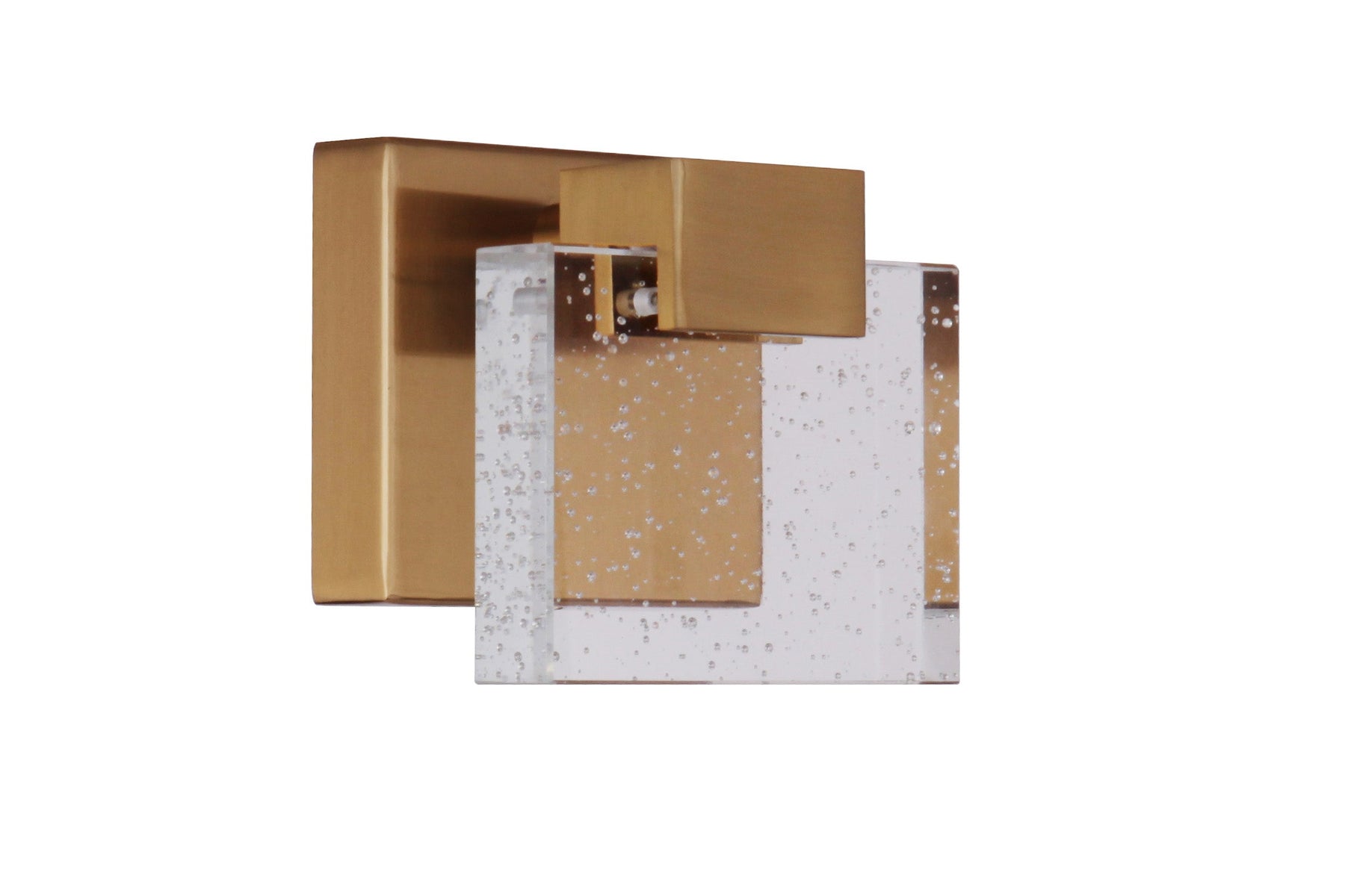 The Alamere 1 Light LED Vanity in Satin Brass is a stunning blend of timeless aesthetics and modern efficiency. This wall sconce features a unique seeded glass design and is damp rated, making it ideal for humid environments. It utilizes an integrated 7 Watt LED bulb, producing 250 lumens of warm 3000K light, which is also dimmable for customized ambiance. With compact dimensions of 5 inches in width, height, and depth, along with a 3.94-inch extension, this fixture is both space-saving and elegant. Additionally, it is ADA compliant, ensuring accessibility.