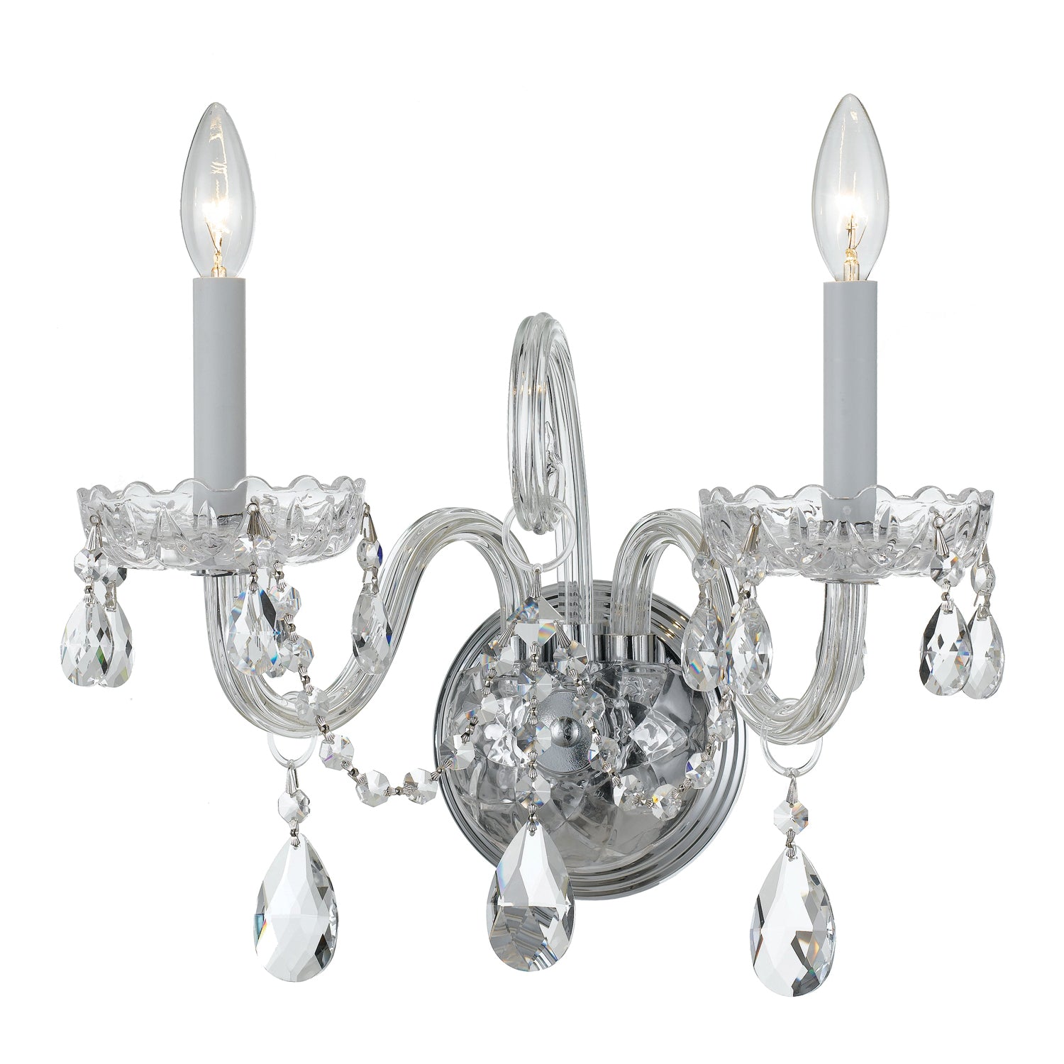 Traditional Crystal 2 Light Swarovski Strass Crystal Polished Chrome Sconce