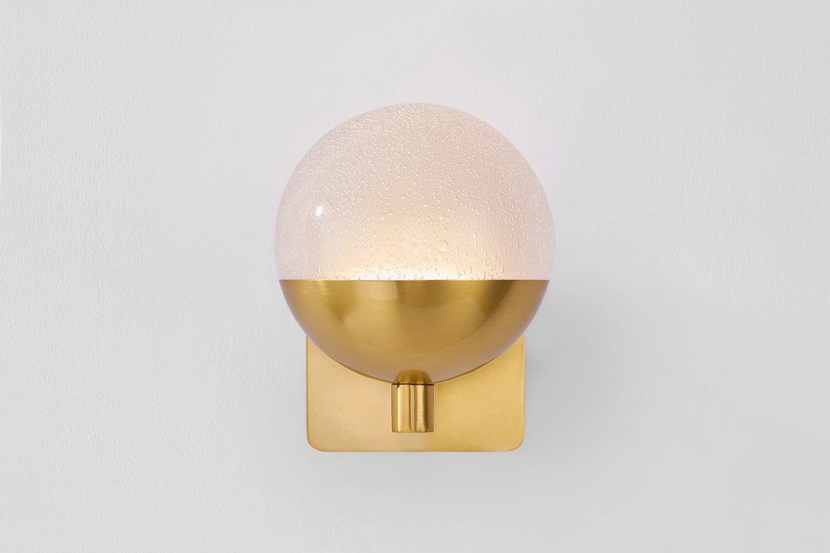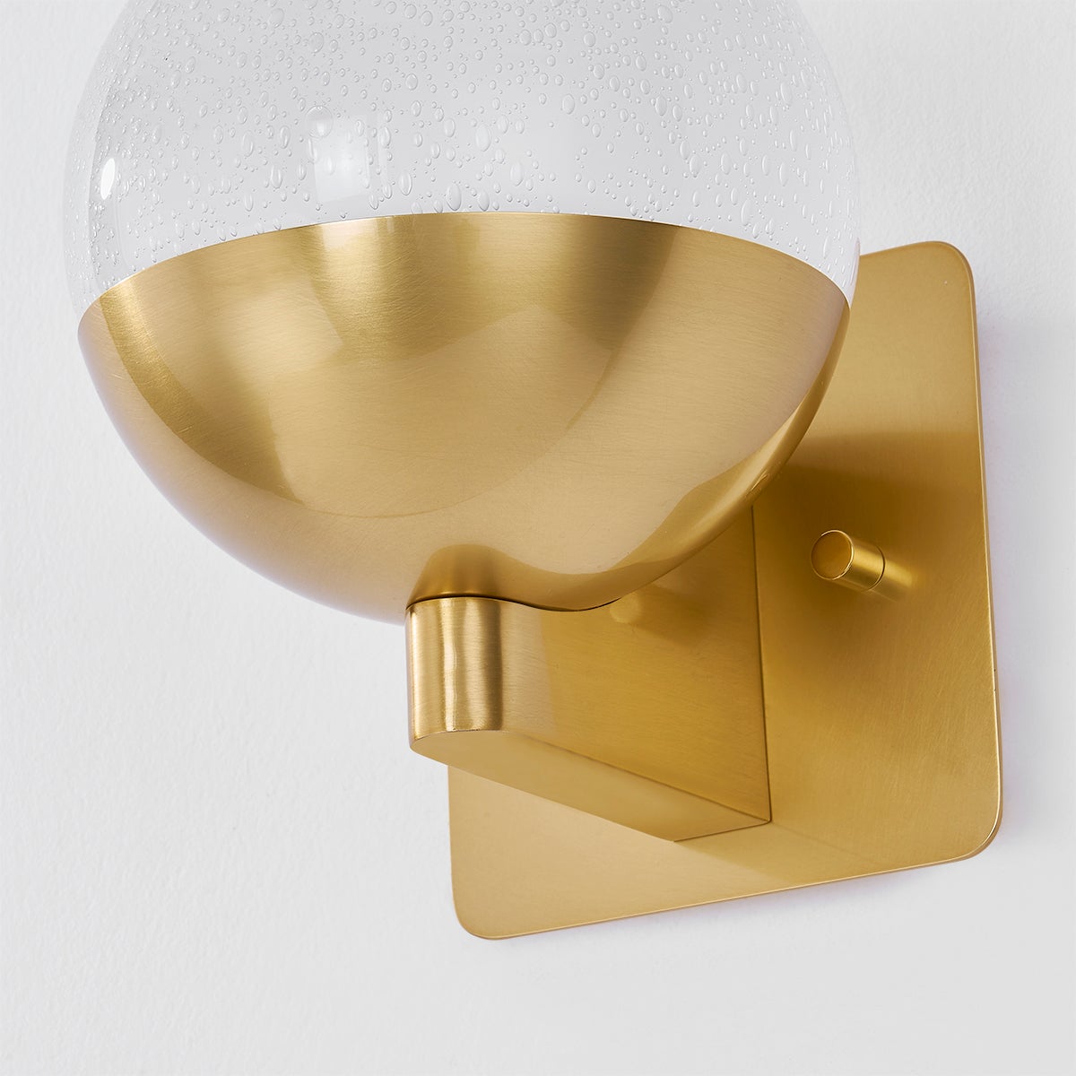 The Rochford Wall Sconce in Aged Brass offers a sophisticated lighting solution with its elegant seeded glass shade. It features one integrated LED socket, providing a maximum wattage of 5.00, with a color temperature of 2700K and a CRI of 90, ensuring warm and vibrant illumination with a total output of 275 lumens. With a width/diameter of 6.00 inches, a height of 7.50 inches, and an extension of 7.25 inches, it fits seamlessly into various spaces. Additionally, it is field serviceable and designed for damp locations, making it ideal for bathrooms and other humid environments.