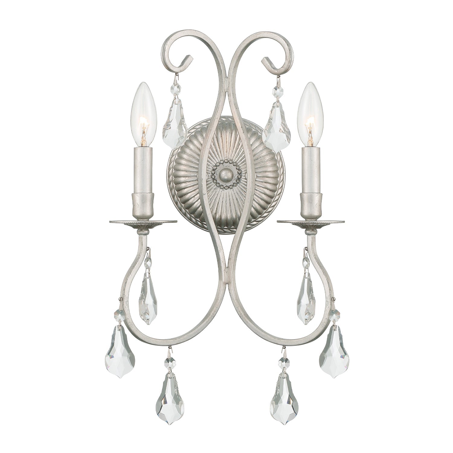 Ashton 2 Light Swarovski Strass Crystal Olde Silver Sconce