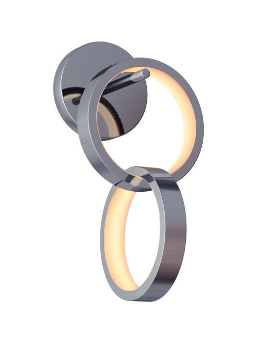 The Context LED Wall Sconce in Chrome offers a striking blend of elegance and functionality. This dimmable fixture features an integrated 10 Watt LED bulb that emits 360 lumens at a warm 3000K color temperature, ensuring a cozy ambiance. Measuring 6.50 inches in both width and depth, with a height of 13.25 inches and an 8-inch extension, this wall-mounted sconce is damp rated, making it ideal for use in bathrooms or other humid environments. Its modern design is complemented by a stunning chrome finish, making it a perfect addition to any contemporary decor.