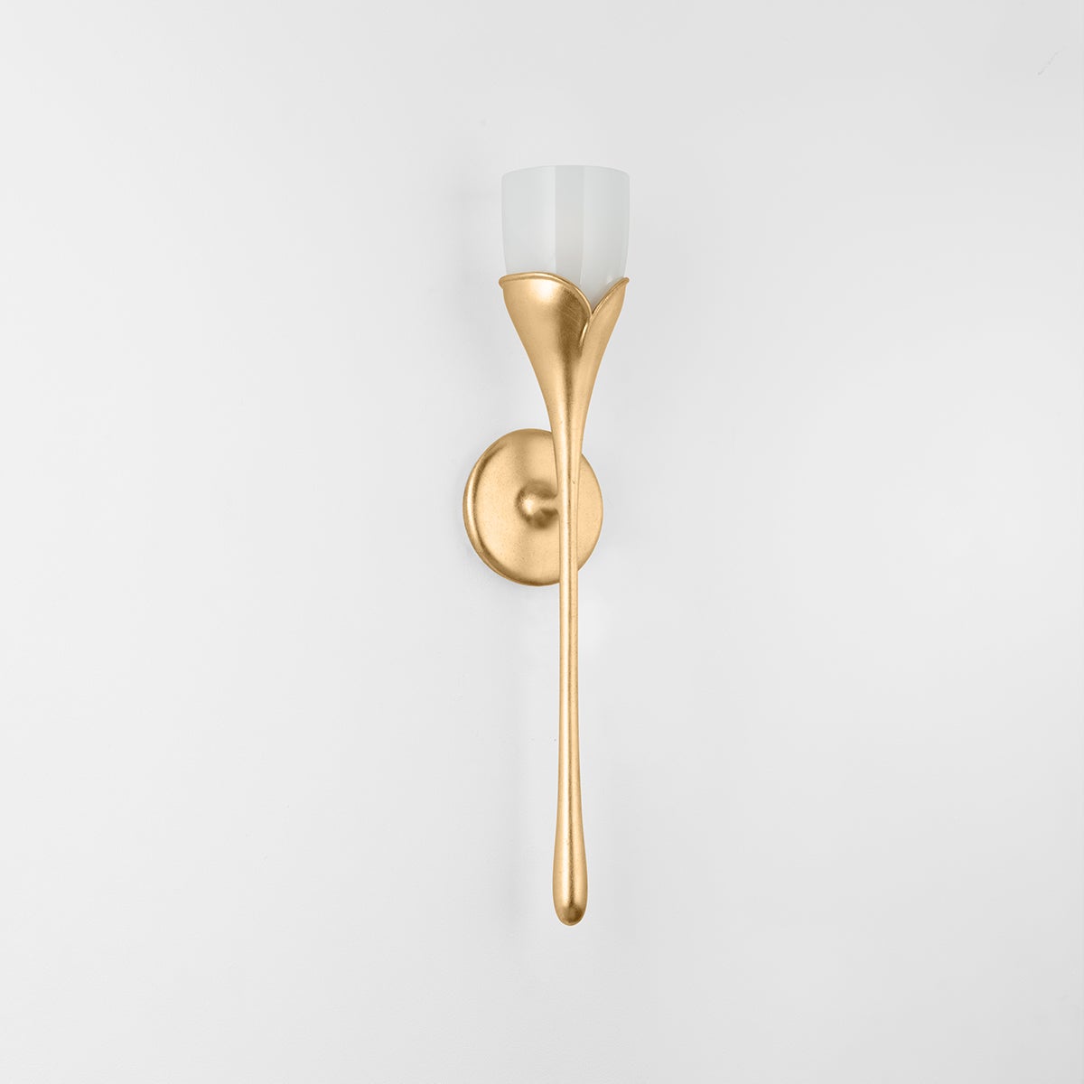 The Bellerose Wall Sconce by Hudson Valley Lighting in Vintage Gold Leaf is a stunning blend of elegance and functionality. This sconce requires one E12 candelabra base bulb (not included) with a maximum wattage of 8W. It features a sleek design with a width of 4.75 inches and a height of 22.50 inches, complemented by a 4.25-inch extension. The beautiful glass shade enhances the overall aesthetic, making it suitable for a variety of settings. Additionally, the sconce is UL Damp rated, ensuring its durability in humid environments.