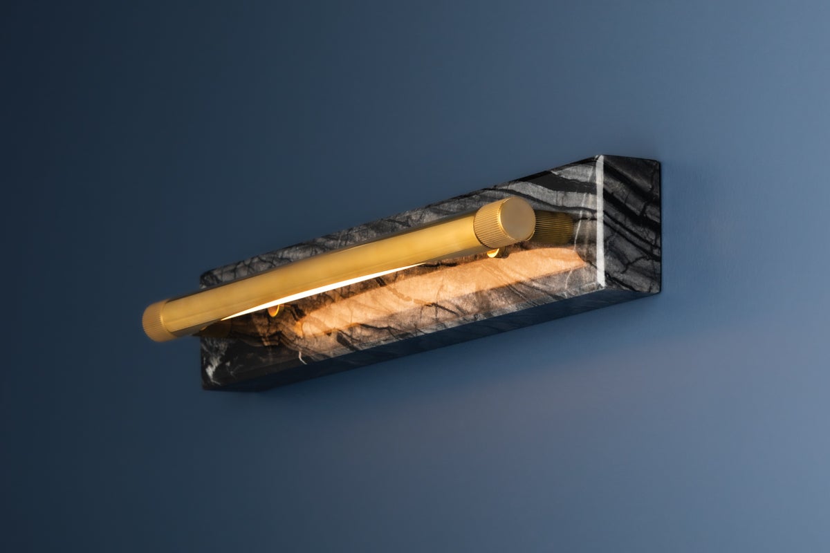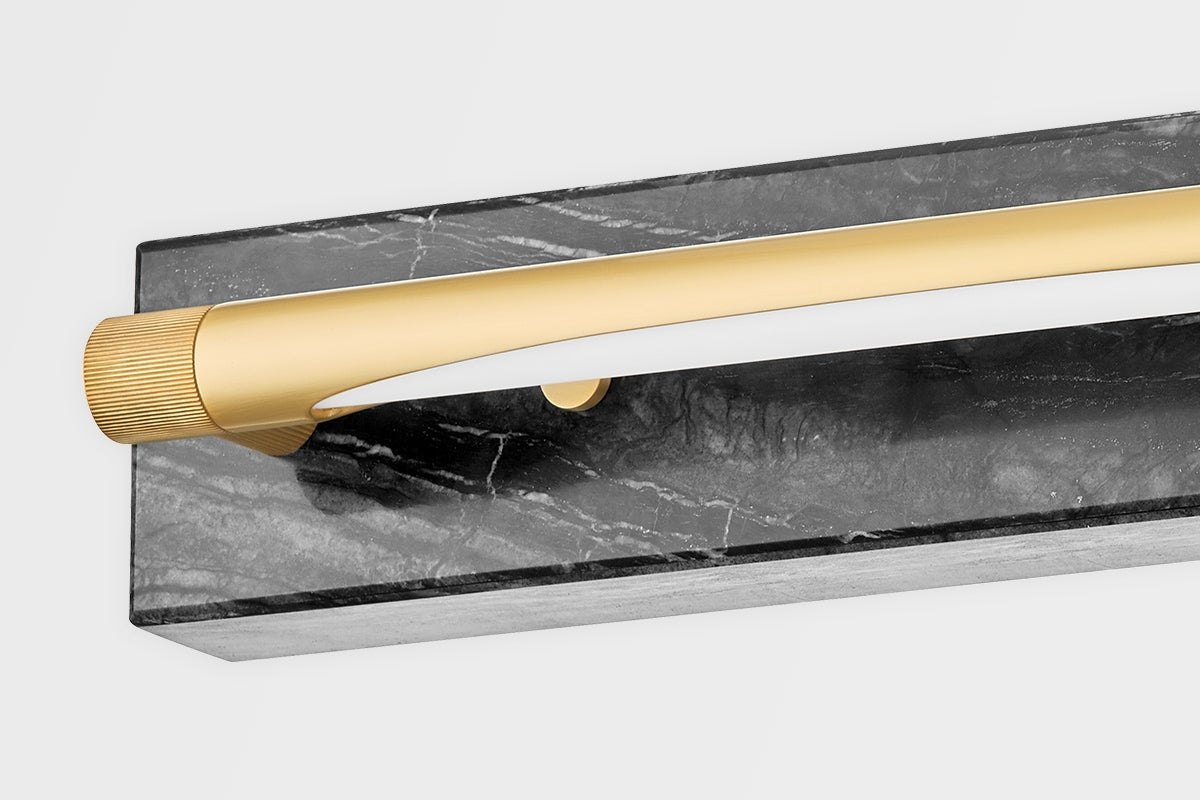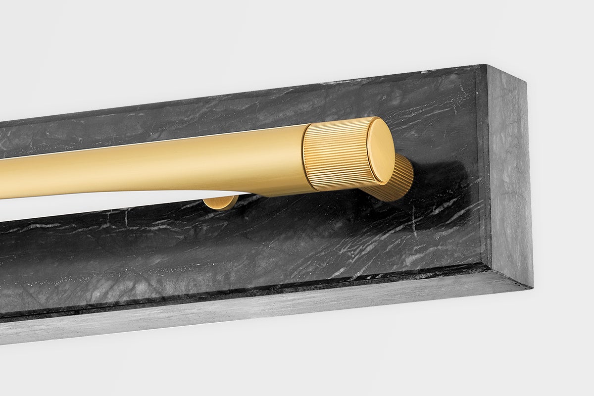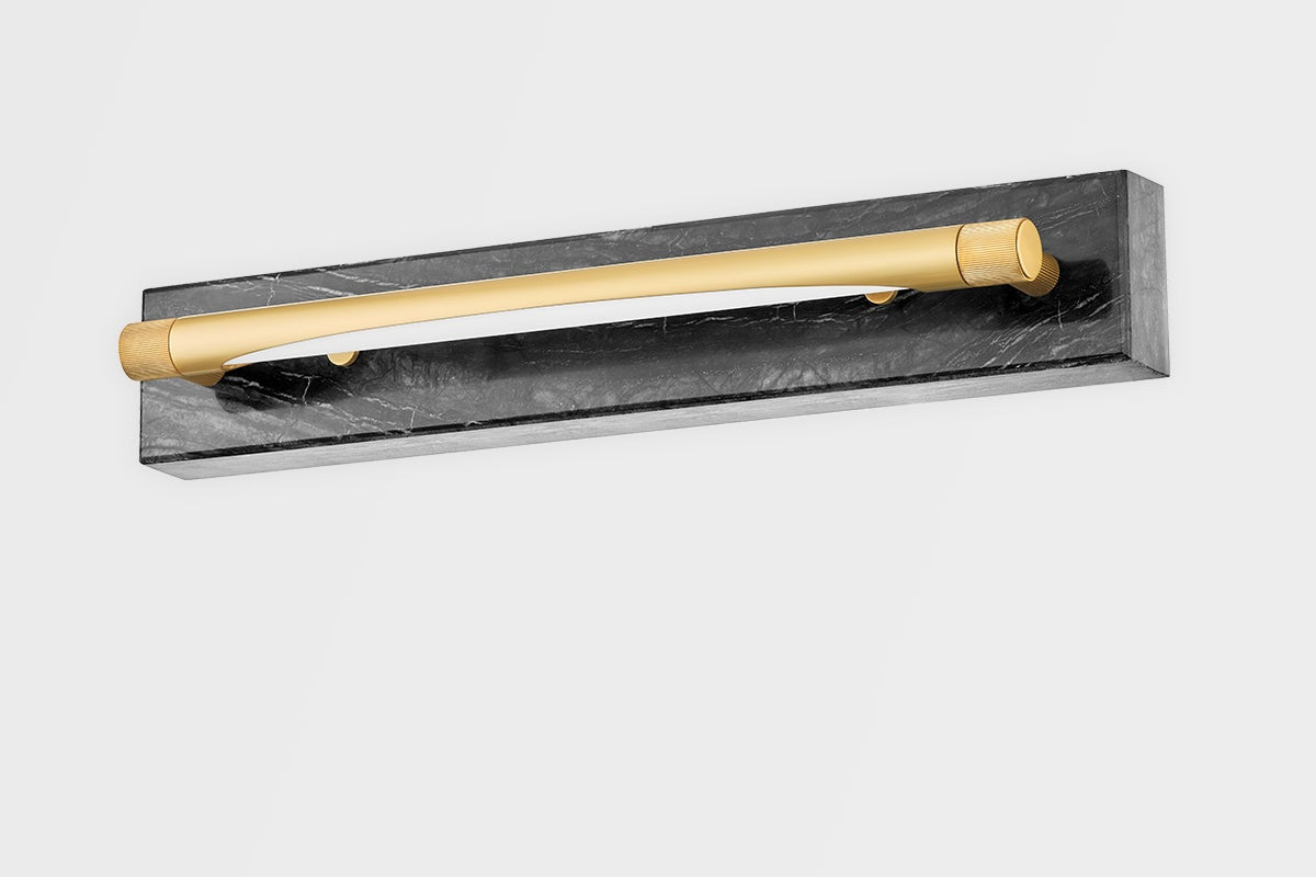 The Hayden Wall Sconce by Hudson Valley Lighting features a sophisticated design in Aged Brass that enhances any decor. This lighting fixture measures 3.00 inches in height, 18.00 inches in length, and offers a 4.00-inch extension from the wall. It is equipped with an integrated LED socket, providing an impressive 8W of power with a color temperature of 2700K and a high CRI of 90 for vibrant illumination. The elegant white shade complements its modern aesthetic while ensuring optimal light diffusion. This sconce is UL Damp rated, making it suitable for use in humid environments, and is field serviceable for added convenience.