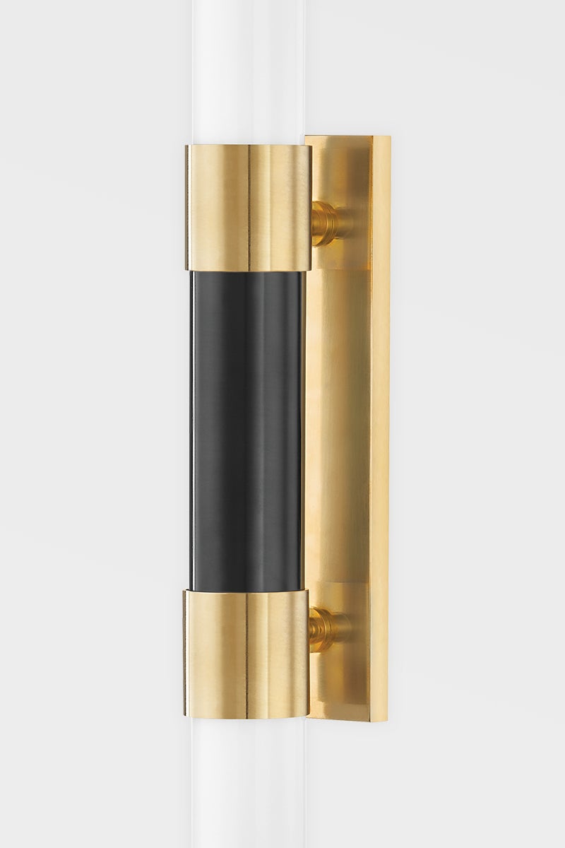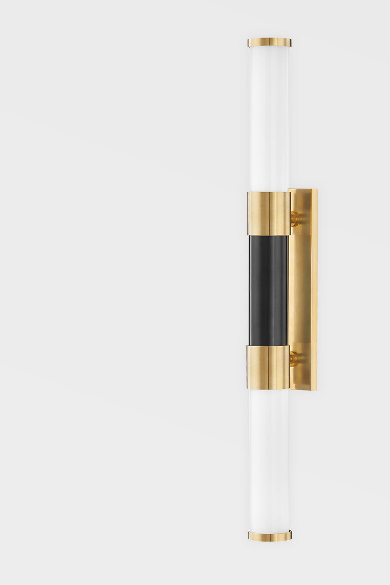 The Huntington Wall Sconce by Hudson Valley Lighting offers a sophisticated lighting solution with its elegant design and practical features. This fixture measures 2.50 inches in width and 24.00 inches in height, with a 3.50-inch extension, making it perfect for various wall placements. It is equipped with two integrated LED lamps offering a total wattage of 11.00, producing an impressive 843 lumens with a color temperature of 2700K and a CRI of 90 for exceptional color rendering. The white glass shade beautifully complements the aged old bronze or polished nickel/black finish options. It is UL Damp rated, ensuring its suitability for humid environments, and is field serviceable for easy maintenance.