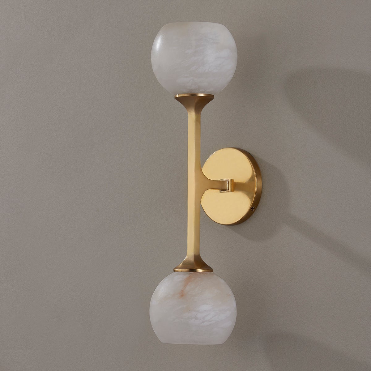 The Melton Wall Sconce by Hudson Valley Lighting is an elegant choice for enhancing your space with contemporary style. This sconce features two G9 socket bulbs (not included) with a total wattage of 8W, ideal for creating a warm ambiance. Measuring 5 inches in width and 18.5 inches in height, with a 6-inch extension, it suits both narrow and wide settings. The alabaster shade adds a sophisticated touch, while the Aged Brass and Polished Nickel finish options provide versatility to match various decor styles. Additionally, its UL Damp rating ensures it's suitable for use in areas with humidity, such as bathrooms.