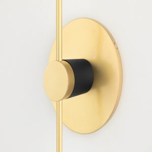 The Astrid Wall Sconce by Mitzi combines elegant design with practicality, featuring a width of 4.75 inches and a height of 18 inches. This stylish fixture requires two E26 medium base bulbs (not included), with a maximum wattage of 60W each. It offers an extension of 5.00 inches and has a top-to-center measurement of 9.00 inches, making it ideal for a variety of spaces. Available in sophisticated finish options of Aged Brass/black and Polished Nickel/black, this wall sconce is UL Damp rated, ensuring its suitability for bathrooms and other humid environments.