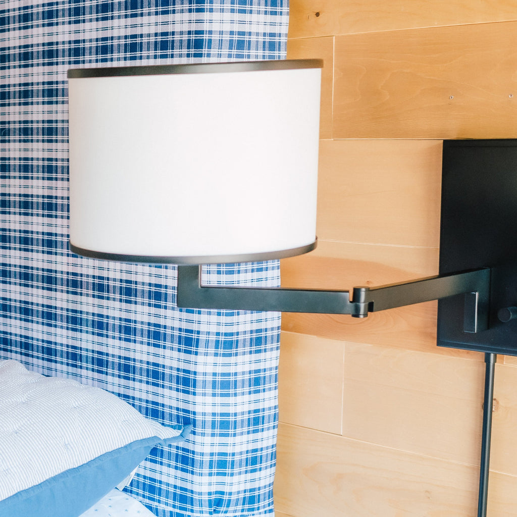 The functional and fashionable Madison task light is versatile enough to fit into any interior. Stylish, modern and minimal, the fixture features a white fabric shade and square beveled backplate, powered by a dimmable switch to adjust brightness and can be hardwired or plugged into your outlet. Designed to direct light where you need it most, this fixture is both sleek and contemporary, allowing its design to be incorporated easily into any home decor.